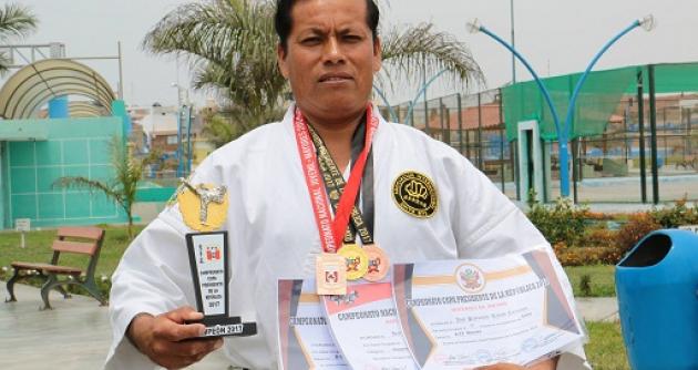 Una medalla de oro y otras dos de bronce consiguió el profesor de Karate de la Escuela Municipal de Deporte de Nuevo Chimbote, José Ruiton Carrasco, quien participó en el Campeonato Nacional de Karate Juvenil y Mayores 2017 organizado por la Federación Nacional de Karate desarrollado en Lima, donde participaron más de 700 deportistas de todo el país.