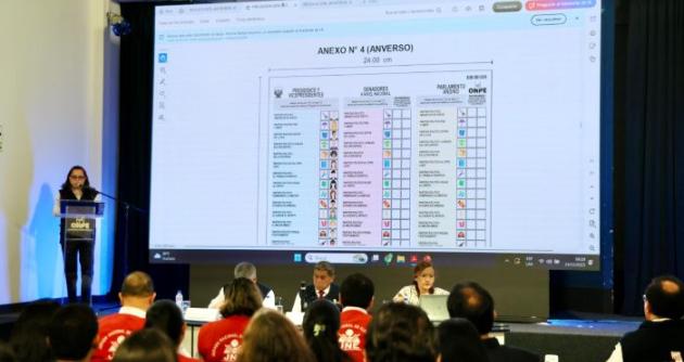 Por último, el ente electoral también hizo público el diseño para la Segunda Elección Presidencial. Esta tendrá una medida de 21.00 cm de ancho por 15.00 cm de largo y consignará el nombre de la organización política, el logo del partido o alianza y la foto del candidato/a presidencial. En el reverso aparecerá el nombre de la elección y los espacios para las firmas de miembros de mesa y personeros.
