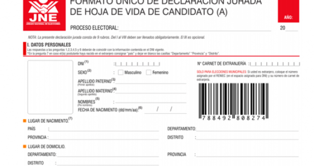 El 19 de febrero el Pleno del Jurado Nacional de Elecciones aprobó el nuevo formato de declaración jurada de hoja de vida para las Elecciones Regionales y Municipales 2018.