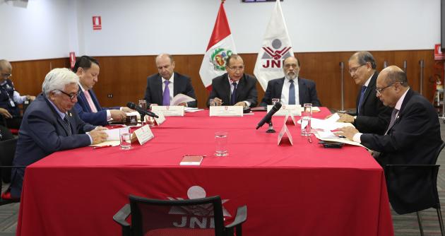 En la sesión, presidida por el titular del Jurado Nacional de Elecciones (JNE), doctor Víctor Ticona Postigo, participaron los jefes de la Oficina Nacional de Procesos Electorales, Manuel Cox Ganoza, y del Registro Nacional de Identificación y Estado Civil (Reniec), Jorge Yrivarren Lazo, así como miembros del Pleno y funcionarios de los tres organismos electorales.