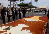 Desde el sábado por la noche, hicieron alfombras de flores en el perímetro de la plaza de armas.