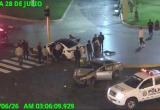Chimbote en Línea.- Una cámara de videovigilancia captó un violento accidente de tránsito ocurrido hoy a las 3 a.m. en la intersección de las avenidas José Gálvez y Francisco Bolognesi, altura de la Plaza 28 de Julio en Chimbote.