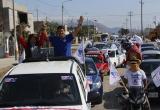 Chimbote en Línea (Elecciones 2014).-Los candidatos por la presidencia regional de Áncash, Tania Ruiz; y por el distrito de Nuevo Chimbote, Clindt Silva; lideraron la multitudinaria caravana en el distrito sureño.