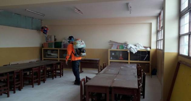 Chimbote en Línea.- Unas 56 instituciones educativas de la jurisdicción de la Ugel Santa, vienen siendo fumigadas previo al inicio de clases y por la emergencia que se vive a consecuencia de las lluvias y huaicos que trajo consigo la proliferación de zancudos.