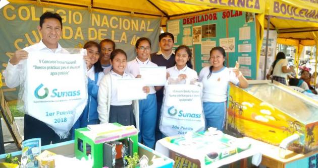 El docente Robert Díaz Beteta y la escolar Roxana Montañez presentaron el proyecto de recuperación de agua de los lavaderos, a través de la utilización de un destilador solar. “En el transcurso del lavado de manos y de platos se genera una contaminación del agua al usar productos químicos, pero esto se puede recuperar con varios procedimientos”, anotó.