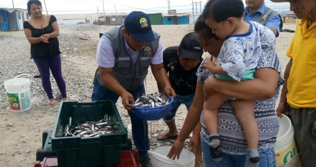 El director regional de la Producción, Rubén Valentín Soria, dispuso el reparto de una tonelada de anchoveta en cuatro sectores del pueblo joven San Pedro: Mi Paraíso, Jesús de Nazaret, el Mirador y Los Balcones, aproximadamente se distribuyó a más de tres mil personas.