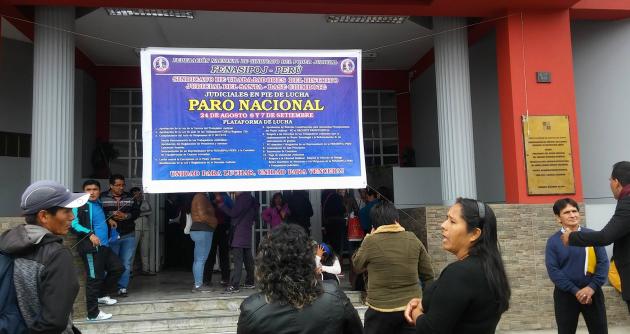 Chimbote en Línea.- un paro de 24 horas acatan hoy los trabajadores de la Corte Superior de Justicia del Santa, quienes exigen al Gobierno Central que atienda su pliego de reclamos entre ellos el incremento de sus remuneraciones.