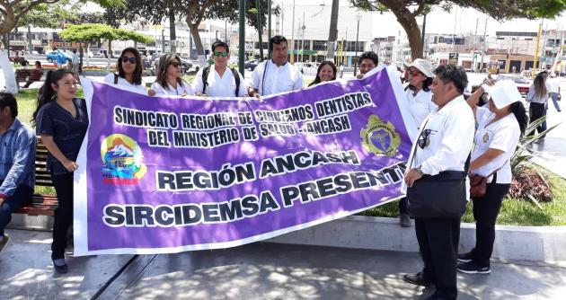 Chimbote en Línea.- Agremiados al Sindicato de Cirujanos Dentistas de la región Áncash, acatan un paro de 48 horas para exigir al Ministerio de Salud que cumpla el compromiso pactado con la exministra del sector Patricia García, ya que hoy la representante del Minsa Silvia Pessah se está negando.