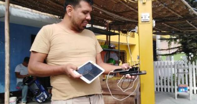 Chimbote en Línea.- Un chimbotano de 44 años ha sabido darle una utilidad innovadora a la energía solar, y ha creado un cargador de 14 celulares a la vez.