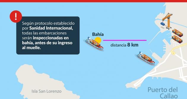 En este contexto, se ha dispuesto, como medida preventiva, que las naves que anuncien su arribo a los puertos del país deberán permanecer (fondear) en bahía antes de su ingreso al muelle, donde se realizan las operaciones de carga y descarga.