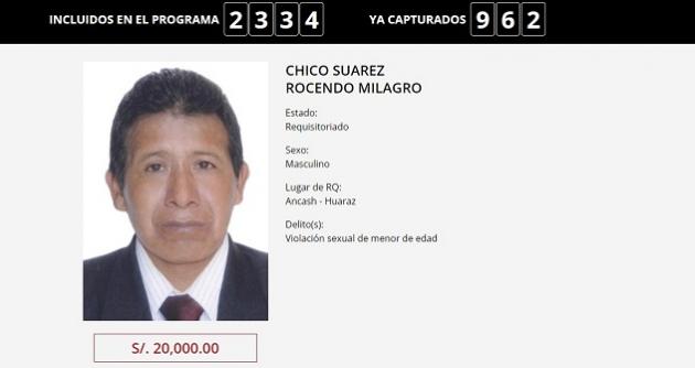 Se trata de Rosendo Milagro Chico Suárez de 49 años, quien tiene una requisitoria por el delito contra la libertad sexual en la modalidad de violación a una menor de edad, hecho ocurrido en Huaraz.