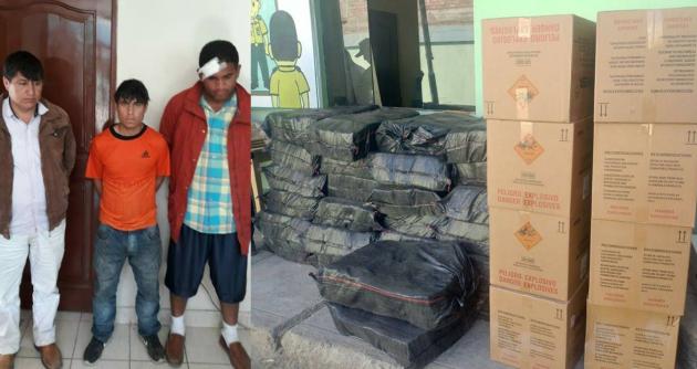 Según informó la Policía, tras la intervención se procedió al registro vehicular hallando escondido entre sacos de guano de gallina material explosivo, al parecer de procedencia ilegal. De inmediato se dispuso la detención del conductor y sus ocupantes para luego ser trasladados a la dependencia policial.