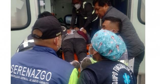 El personal del Equipo Funcional de Salud y los agentes del serenazgo evacuaron de emergencia a la mujer herida al Hospital I de Essalud en Nuevo Chimbote.