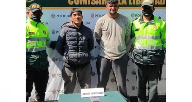 Se trata de José Gabriel Chávez Quito de 33 años y Jean Carlos Manuel Rejas Díaz de 36, quienes tenían en su poder el teléfono celular que habían robado a su víctima.