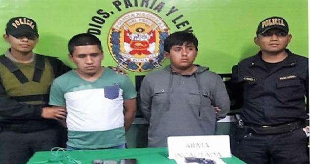 Los detenidos fueron identificados como Erick Jefferson Solórzano Mendo de 20 años y Juan Eduardo Yupán Pinedo de 19, quienes serán denunciados por el presunto delito contra el patrimonio en la modalidad de robo agravado.