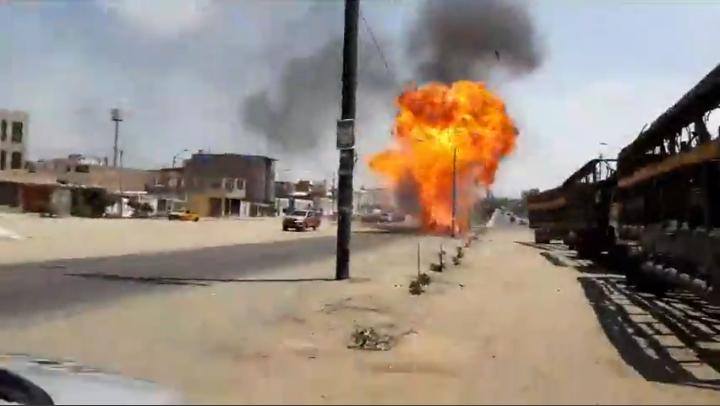 Chimbote en Línea.- Un tanque de gas instalado en un vehículo station wagon de placa de rodaje TGG-971 se desprendió cuando se desplazaba por la intersección de la avenida Camino Real y el jirón Callao, en Chimbote, y causó alarma a los vecinos.