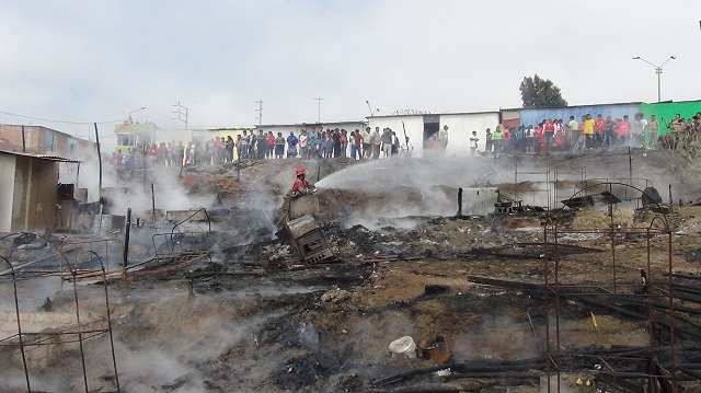 Chimbote en Línea. - Ocho viviendas fueron consumidas por el fuego en el asentamiento humano 16 de Diciembre en Chimbote, luego de producirse un corto circuito en una de las casas afectadas.