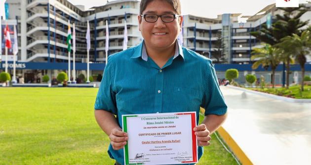 Chimbote en Línea.- El poema “Alabanza a mi salvador” de Geyler Hartley Aranda Rafael, estudiante de la Facultad de Ingeniería de Sistemas de la Universidad César Vallejo campus Trujillo, logró el primer lugar en el I Concurso Internacional de Poesía: “La marimba canta en Jotabé”, certamen realizado en la ciudad Chiapas, México.