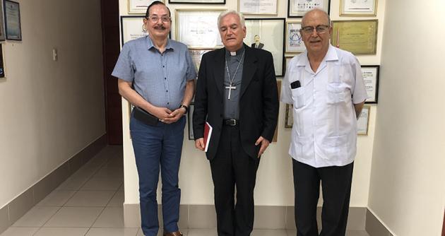 El representante diplomático de la Santa Sede fue presentado al Rector Dr. Julio Domínguez Granda por el obispo Monseñor Ángel Francisco Simón Piorno, quien a la vez es Gran Canciller de nuestra universidad.