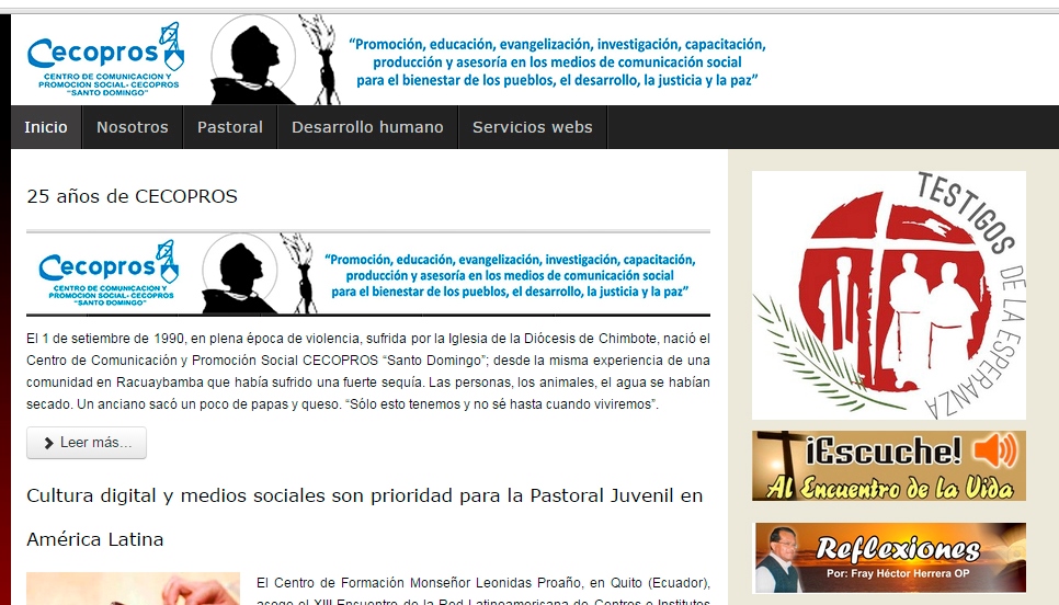 Chimbote en Línea.- El 1 de setiembre de 1990, en plena época de violencia, sufrida por la Iglesia de la Diócesis de Chimbote, nació el Centro de Comunicación y Promoción Social CECOPROS “Santo Domingo”; desde la misma experiencia de una comunidad en Racuaybamba que había sufrido una fuerte... Leer más