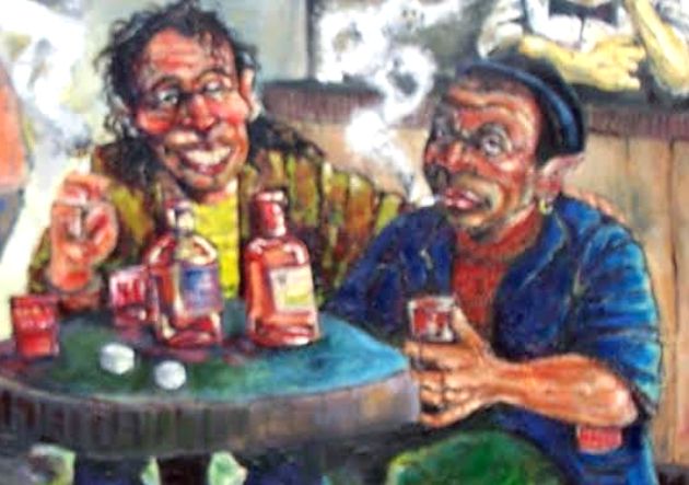 El cholo Pepe llenaba y vaciaba el vaso con mucha prisa, como si estuviera ansioso, temeroso de algo. Pero no decía nada, solo tomaba e insultaba. Tomaba y se hacía el que no sabía nada.