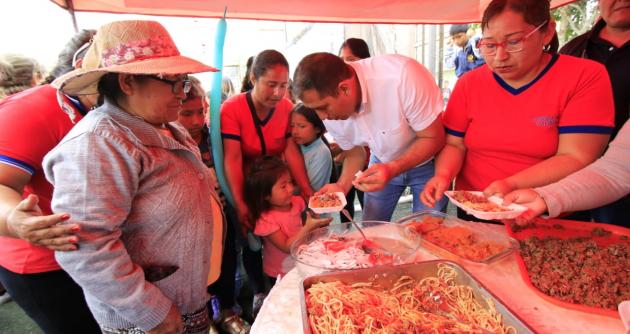La máxima autoridad ancashina junto al titular de la Dirección Regional de la Producción, Rubén Valentín Soria, invitaron a la población de Laderas de los Jardines a degustar platos en base al preciado recurso hidrobiológico preparados a través del Programa de Ayuda Alimentaria Regional (PAAR), reactivado por la actual gestión regional para combatir la baja alimentación en proteínas y hierro.
