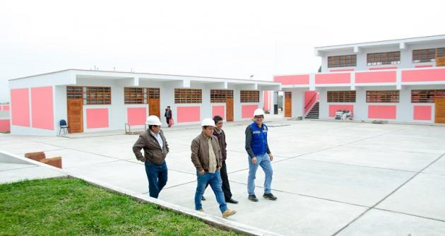 El gerente de la Subregión Pacífico, David de la Cruz Pizán, junto al el jefe de Supervisión y Liquidaciones, Jhorsho Velásquez Lescano, y el inspector Augusto Huamán López, verificaron las labores que se ejecutan en dicho plantel, con respecto a la instalación del sistema eléctrico que faltaba para la entrega de la obra, cuya construcción por fin se culminará después de seis años de espera.