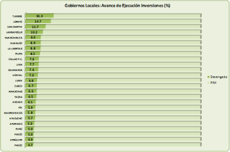 Este avance de ejecución es significativo al darse dentro una variación del presupuesto de proyectos de los gobiernos locales de S/. 6,965 millones del presupuesto de apertura (PIA) a S/. 10,463 millones del presupuesto modificado (PIM), variación nominal de 50%. Esto debido a la prolongación de inversiones que viene permitiendo la utilización de saldos de balance del 2011, política demandada por los gobiernos locales y considerada en la ley de presupuesto de este año.
