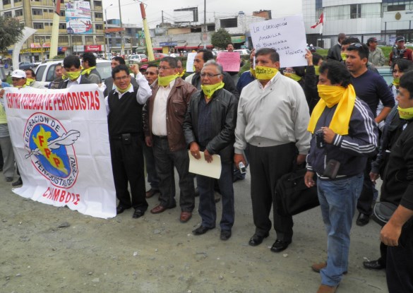 Chimbote en Línea (Libertad de Prensa). El periodismo libre está en riesgo.Los hombres de prensa, agremiados y no agremiados, se juntaron hoy en el frontis de la Corte Superior de Justicia del Santa para elevar su voz de protesta contra las querellas del presidente de Áncash, César Álvarez Aguilar, interpuestas a los hombres de prensa Miguel Alcántara Flores del Diario Correo y Santos Paredes García, Noé García Velásquez y César Quino Escudero del Canal 55.