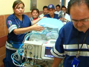En una incubadora especial, con un sistema sofisticado, y con un ventilador portátil, la cincomesina fue sacada del hospital La Caleta para ser llevada en una ambulancia del EsSalud hasta el aeropuerto de Chimbote de donde salió rumbo a la capital de la República.