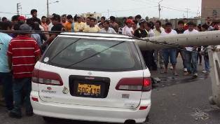 Los esposos Mariluz Chuquilin Pérez (41) y Jerson Chang Moscoso (47) fueron evacuados de emergencia por Seguridad Ciudadana y un cuerpo de bomberos de Nuevo Chimbote al hospital regional, tras sufrir lesiones graves al impactar su cuerpo contra el parabrisas y recibir el pesado poste de cemento.