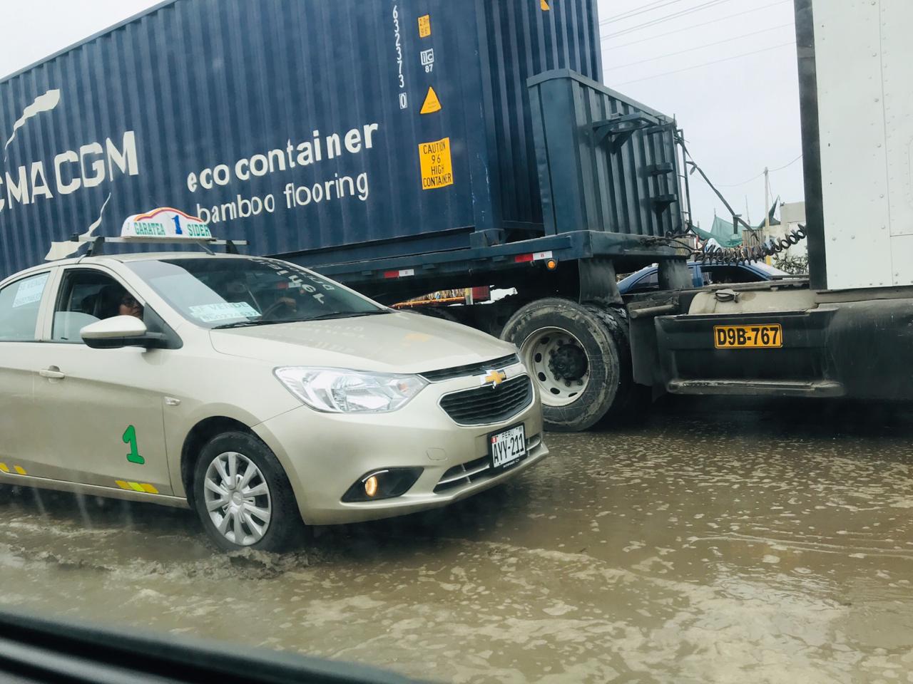 La inundación afectó también a la carretera Panamericana Norte, a la altura de los pueblos jóvenes 1 de Mayo y Villa María, originando problemas en el tránsito vehicular que se congestionó ayer por varias horas, debido a que por esta vía transitan vehículos de carga pesada tanto del norte como del sur del país, además del tránsito local.