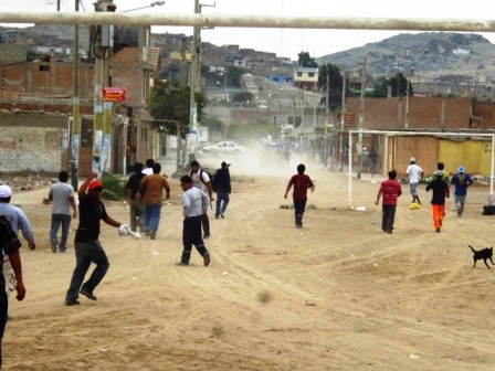 Chimbotenlinea.com (Por Cintia Cabrera).- Una batalla campal se registró en la construcción del parque central en el pueblo joven 3 de Octubre donde corrieron piedras y balas entre las facciones contrarias de Construcción Civil, lideradas por Víctor López Padilla y Ezequiel Nolasco Campos.