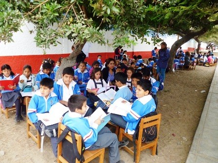 Chimbotenlinea.com (Por Cintia Cabrera).-En su segundo día de lucha, los escolares de la Institución Educativa “República Argentina” continúan haciendo clases en plena vía pública. Esta mañana todas las aulas se trasladaron a la parte externa del plantel a un costado de la avenida Pacífico. Alumnos y docentes manifestaron que no depondrán su  protesta hasta que sean atendidos.