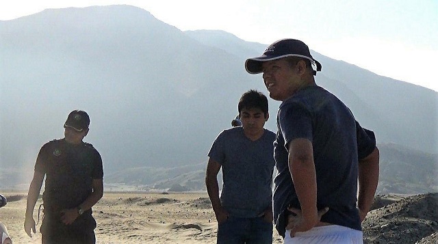 Los agentes de la Comisaría Villamaría y serenos de Nuevo Chimbote intervinieron en la playa El Dorado a los dos policías y al otro sujeto cuando pretendían fugar en el automóvil Toyota Yaris rojo, el cual se atolló en la arena. (Redacción Central)