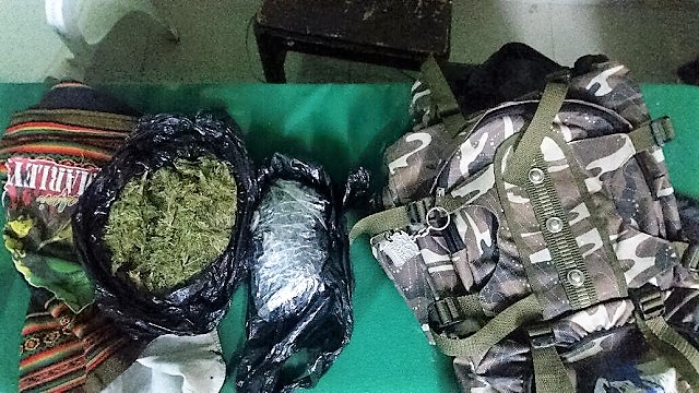 En el dormitorio de este sujeto las autoridades policiales hallaron una mochila de colores del Ejército Peruano con dos bolsas en su interior que contenían 355 gramos de marihuana una y la otra 218, haciendo un total de 573 gramos de marihuana.