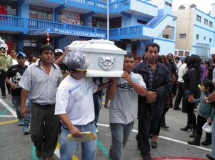 El féretro del pequeño Manuelito fue trasladado desde su vivienda hasta la institución educativa donde cursaba el 3º grado de educación primaria. A las 10 a.m. se realizó esta sentida ceremonia, donde sus amigos,