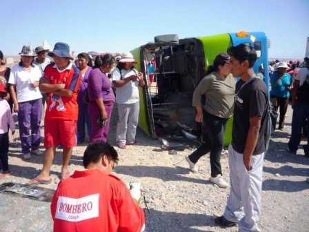 (Fuente: La República) Un ómnibus del servicio interprovincial que se dirigía de Huaraz a la ciudad de Llamellin con más de 40 pasajeros, se salió de la carretera y se precipitó a un abismo de 50 metros donde fallecieron cuatro pasajeros y quedaron heridos más de treinta, según informó la policía de la XIII región policial de Áncash. (Foto RPP)El vehículo de la empresa de transportes “Imperial” de placa UD – 2768 que se dirigía de Huaraz a Llamellín, se desbarrancó unos 50 metros en una peligrosa curva debido a las malas condiciones en la que se encuentra la carretera por las intensas lluvias en la zona del Callejón de Conchucos.