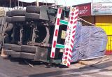 Chimbote en Línea. - Un tráiler cargado de sacos conteniendo harina de pescado se volteó en el centro de Chimbote, su chofer resultó herido y fue evacuado de emergencia al Hospital La Caleta de esta ciudad.