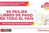 Chimbote en Línea.- El presidente de la República, Martín Vizcarra, anunció que, desde ayer (2 de abril) a partir de las 18.00 p.m., también se suspendió el cobro en un grupo de peajes, a cargo de operadores privados, mientras dure el Estado de Emergencia Nacional.