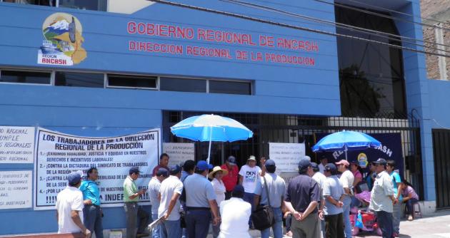 Chimbote en Línea.- Los 27 trabajadores de la Dirección Regional de la Producción de Áncash, con sede en Chimbote, continuarán acatando su huelga nacional indefinida luego de que el presidente encargado del Gobierno Regional de Áncash, Enrique Vargas no habría atendido su demanda.