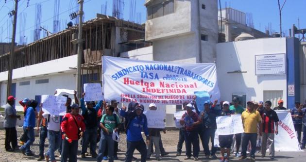 Chimbote en Línea.- Los obreros de la empresa pesquera TASA acatan desde ayer una huelga indefinida en demanda del aumento de sus remuneraciones de seis nuevos soles diarios.
