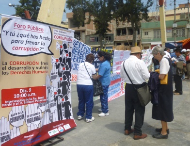Esta mañana, en el marco de Día Internacional de la Lucha Contra la Corrupción, la Fiscalía Especializada realizó una campaña de concientización, en la cuadra 3 de la avenida José Pardo, donde se instaló pancartas con mensajes de valores, alusivos a la fecha. (Texto y fotos Milton Palpa)