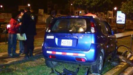 Como resultado del impacto, el automóvil de placa H1G-516 de la “Línea P” tumbó diez parantes de fierro con cadenas de la municipalidad, Jáuregui Zúñiga fue trasladado a la dependencia del sector y una hora más tarde. El automóvil fue remolcado al depósito de la delegación policial.
