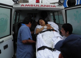 La comerciante Kelly Flores Pérez de 34 años, que fue baleada la tarde del domingo cuando sicarios acabaron con la vida del exdirigente del Mercado 2 de Mayo, Omar Castro Zurita, fue evacuada de emergencia al Hospital Regional de Trujillo.