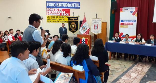 Chimbote en Línea.- (Periodismo Escolar).- Con el fin de que estudiantes de más de 10 instituciones de Ancash expongan acerca de temas de Derechos Humanos enmarcados en el ámbito nacional, se llevó a cabo el foro estudiantil “Los Derechos Humanos en los asuntos públicos desde la visión estudiantil”, en la Institución Educativa Parroquial Particular “Mundo Mejor”.