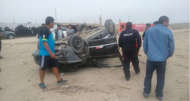 Chimbote en Línea. - Tres heridos dejó como saldo la volcadura de un automóvil en la carretera Panamericana Norte, en el distrito de Nuevo Chimbote. Aparentemente la excesiva velocidad habría ocasionado el accidente.