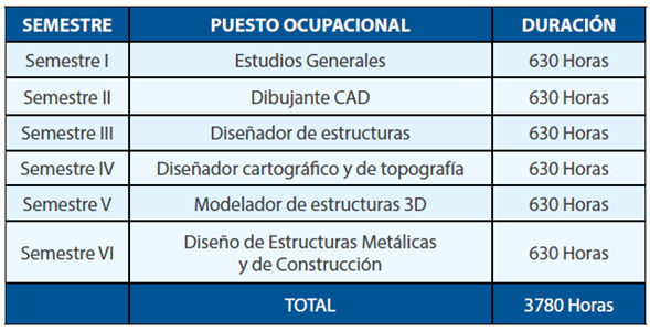 La formación tiene una duración de 6 semestres bajo el sistema dual; es decir incluye tres semestres de formación en en la Escuela de SENATI y tres con aprendizaje dual en las empresas en ambientes reales de trabajo.