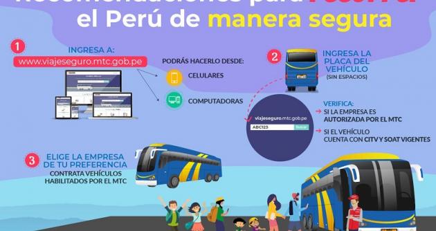 El Ministerio de Transportes y Comunicaciones (MTC) tiene como objetivo el fortalecimiento de la seguridad vial y la lucha contra la informalidad en el servicio de transporte interprovincial de pasajeros. Por ello, lanzó la web (www.viajeseguro.mtc.gob.pe).
