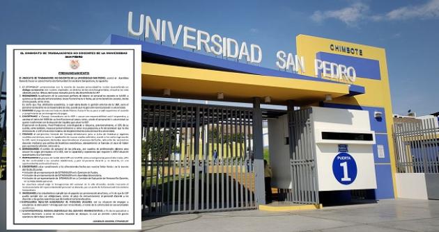 Chimbote en Línea. – A través de un pronunciamiento público los 411 trabajadores no docentes de la Universidad San Pedro (USP) de Chimbote rechazaron la ampliación de la suspensión perfecta de labores.